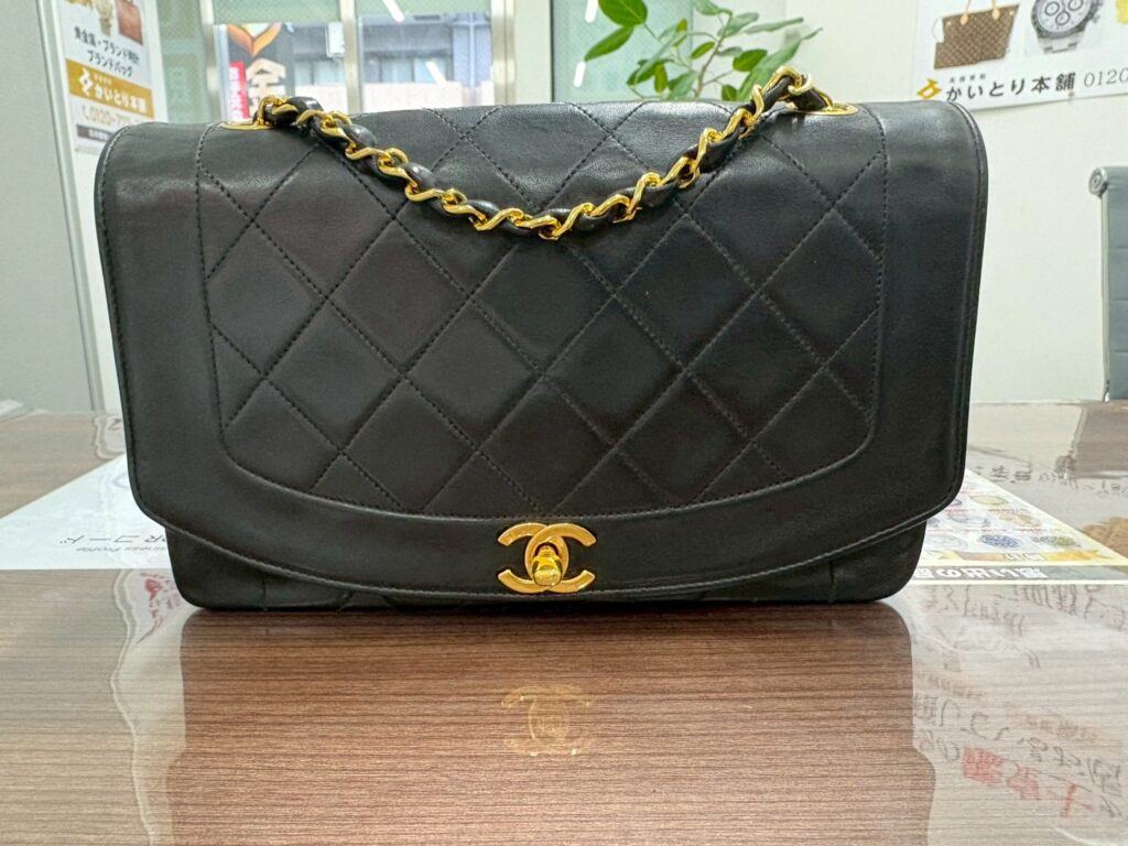 本日はシャネルの人気ヴィンテージモデル 「ダイアナフラップ ラムスキン マトラッセ チェーンショルダーバッグ」をお買取いたしました。