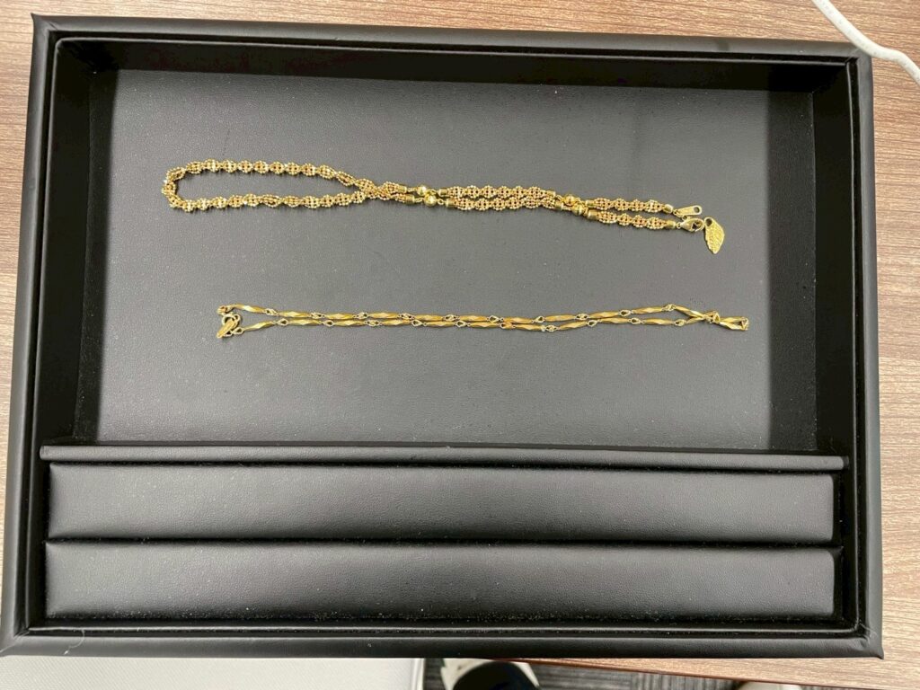 18金製品の査定では、当日の金相場を基準に、重量・純度(K18)・留め具やチェーンの状態を一点ずつ確認します。