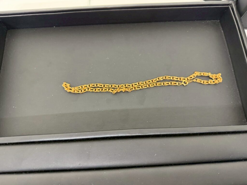 金の買取は重量が最重要。 切れているネックレス、古いデザイン、 片方だけでも問題なく査定可能です。