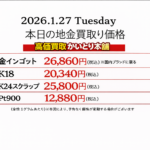 2026年1月27日(火)本日の地金買取価格(高価買取 かいとり本舗)